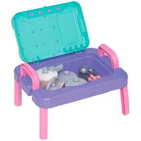 Fogão com Mesinha Infantil - Baby Gourmet - Lilás - Mercotoys: A brincadeira gourmet: a mesinha baby gourmet que vai transformar brincadeira da criançada. Imagine a alegria das pequenas em ter sua própria cozinha gourmet! Detalhes: • Com a mesinha baby gourmet, a brincadeira de faz de conta ganha vida de verdade • Um mini fogão em forma de mesinha, com pés retráteis e portátil, para levar a diversão para onde quiser • Acompanha kit completo de panelinhas e utensílios para que seu filho possa preparar as receitas mais deliciosas • Os botões da mesinha fazem barulhos reais, imitando os sons de um fogão de verdade, tornando a brincadeira ainda mais realista e divertida • O tampo da mesinha abre e revela um amplo espaço para guardar todos os acessórios, mantendo tudo organizado para a próxima brincadeira. Informações: • Produto: Fogãozinho Mesinha Baby Gourmet • Marca: Mercotoys • Tipo: Fogãozinho Infantil Portátil com Acessórios • Categoria: Brincadeiras de Casinha • Subcategoria: Fogões Infantis • Tamanho (C x L x A): 53 x 31 x 10 cm • Conteúdo: - 01 Mesinha Baby Gourmet - 01 Panela - 01 Panela de pressão - 01 Chaleira - 01 Frigideira - 04 Utensílios - 01 Suporte • Recomendação: para crianças a partir de 03 anos de idade Especificações: • Referência: 440 • Código de Barras: 7896885209712 • Embalagem (C x A x L): 54 x 32 x 11 cm • Embalagem (Peso): 0.931 kg • Material / Composição: Plástico • Registro: 000674/2019 - OCP 0098 BRICS • Certificado: Órgãos Autorizados - OCP´S (Organismos de Certificação de Produtos) Aviso: • As imagens são meramente ilustrativas • Os pesos, tamanhos e medidas são aproximados • As cores e estampas dos produtos podem ter variações • As informações são de responsabilidade do fabricante ou fornecedor