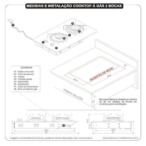 Dimensões do nicho para instalação (cm): A: 2,0 x L: 46,5 x P: 27,5