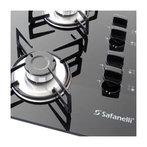 Características: Marca: Safanelli Modelo: Semplice Cooktop 4 bocas. 3 semirrápido 1.750w e 1 rápido 3.000w. Vidro temperado de 6mm Acendimento super automático Cordão selador de vedação Trempes individuais com borracha suporte queimador em aço inox Gás GLP Aprovado pelas normas do INMETRO, portaria 400 Classe A