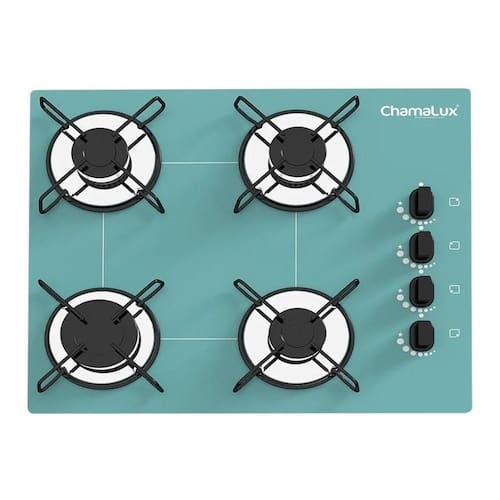 O Fogão Cooktop 4 bocas Chamalux possui um design incomparável, trazendo sofisticação e requinte para sua cozinha. Suas grades possuem um sistema de encaixe que facilita a limpeza e proporciona mais segurança. Seus botões são de fácil manuseio, com acendimento automático; basta girar para acender a boca. Inspire-se como um Autêntico Chef e cozinhe com o que há de melhor para você, sua família e seus amigos Caraceterísticas: - Marca: Chamalux. - Número de bocas: 4. - Classificação: A -material: Vidro Temperado -cor: Verde agua - Voltagem: Bivolt 110v-220v - Medidas CxLxA 55x46x10 Encaixe CxL 50x36,5 - Acendimento Automático. - Botões de fácil manuseio. - Queimadores esmaltados. - 03 Queimadores semi-rápidos de 1750w. - 01 Queimador ultra rápido de 2200w. - Trempe de ferro fundido de alta resistência. - Grades esmaltadas com sistema de encaixe. - Mesa de vidro temperado 6mm. - Acendimento inteligente: Acende ao girar o botão. de 12 meses contra defeitos de fabricação Cuidados: - Evite a instalação e manuseio próximo do alcance de crianças. - Evite a instalação próximo de geladeiras e freezers. - Certifique-se de que a tomada está segura e apta para ser utilizada. - Não nos responsabilizamos pela instalação deste produto. Imagem Ilustrativa Marca: Não Informado