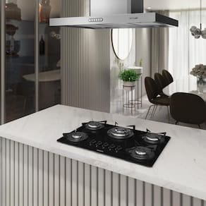 Fogão Cooktop 5 Bocas Tripla Chama - Mesa Em Vidro - Preto - Fogatti Esmaltado 27000501-02 Bivolt -