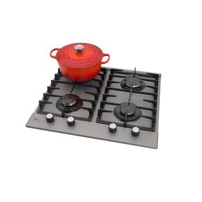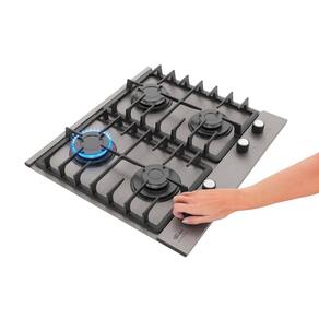 Mesa em acabamento Prime, 4 queimadores, trempes duplas em ferro fundido, acendimento superautomático.Luz de calor residual