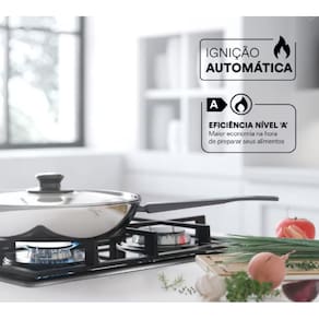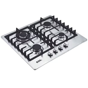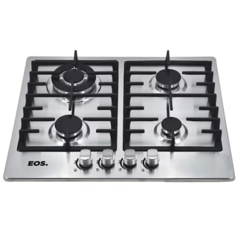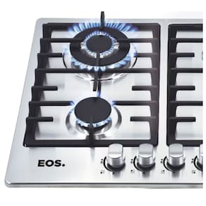 Fogão Cooktop a Gás EOS Premium 4 Bocas em Inox Tripla Chama 3000W. Mesa em inox e trempes em ferro fundido. Selo A de eficiência energética. Queimador Tripla Chama. 2 queimadores semi-rápidos + 1 auxiliar. Trava para crianças. Ignição Automática. Funciona com GLP e GN.Luz de calor residual