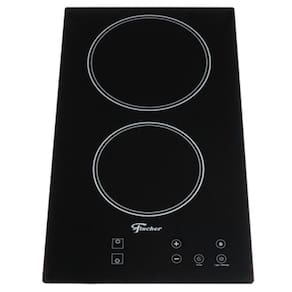 Cooktop Fischer elétrico com mesa de vitrocerâmica, 2 bocas, touch screen, 9 níveis de potência, timer de até 99 minutos, trava de segurança e indicador de superfície quente.Luz de calor residual