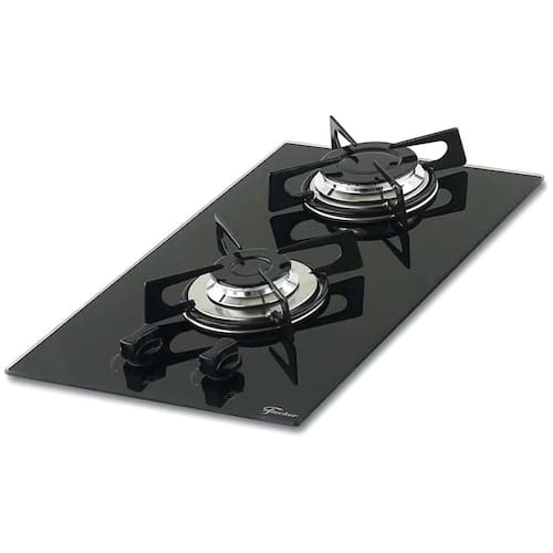 Detalhes do Fogão Cooktop Fischer 2Q Gás Mesa Vidro Preto O Fogão Cooktop Fischer é produzido em vidro temperado, material resistente e fácil de limpar, que agrega ao produto beleza e excelente qualidade.