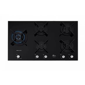 O cooktop possui mesa ergonômica e ampliada de vidro temperado, agregando ainda mais beleza ao ambiente. As trempes individuais são em ferro fundido esmaltado, mais robustas e resistentes, proporcionando maior estabilidade para as panelas. Os suportes das trempes são em material EasyClean na cor preta, facilitando a limpeza.