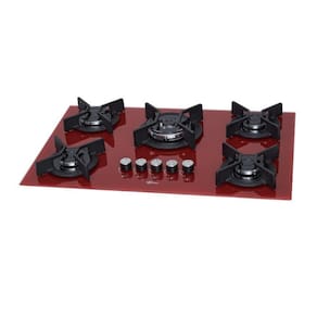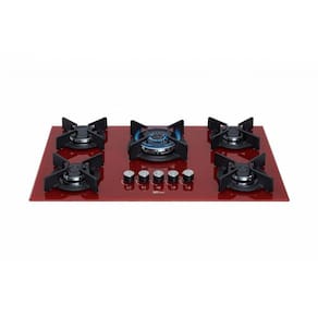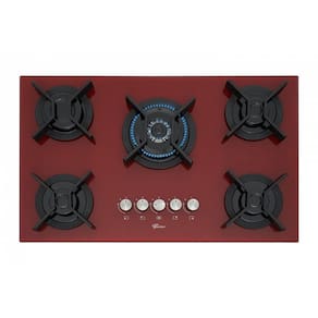 Cooktop Fischer Infinity 5Q TC com mesa de vidro Rouge, trempes individuais em ferro fundido esmaltado, 5 queimadores (1 Tripla Chama de 3700W, 1 Rápido de 3000W, 3 Semirrápidos de 1630W) com tecnologia italiana, acendimento superautomático e câmara de gás fechada.Luz de calor residual