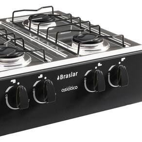 Praticidade Os fogoes asiaticos a gas sao bastante praticos e portateis, principalmente pelo fato de aceitar qualquer tipo de panela. A mobilidade permite que possa conectar em qualquer saida a gas ou espaço para botijao, outro ponto pratico desse modelo de eletrodomestico. O aquecimento e instantaneo e o controle da temperatura tambem. Caracteristicas: mesa de inox, Queimadores esmaltados, Manipuladores anatomicos, Portatil. A durabilidade dos eletrodomesticos de cocçao, como fogoes e cooktops esta diretamente ligada a conservaçao, maneira correta de fazer a limpeza e uso adequado de cada item. Como limpar o Fogao? A limpeza do tampo e dos botoes deve ser realizada com a utilizaçao do lado suave da esponja, ou mesmo com um pano macio, que leve sabao ou detergente neutro. Nao e recomendavel usar produtos abrasivos ou , que alem de apagar as serigrafias, podem danificar o produto. No caso de remoçao de manchas, o mais recomendado e utilizar restaurador para inox, que pode ser encontrado na rede autorizada de serviços. Nao e aconselhavel utilizar produtos de limpeza com jatos de vapor para evitar que a umidade infiltre no produto e o danifique. Essas dicas sao validas para cooktops em inox, vitroceramico ou esmaltados. Dimensoes: Altura: 19,0 cm Largura: 48,7 cm Profundidade: 56,0 cm Peso: 3,17 kg Garantia do Fornecedor: 12 meses Modelo Asiatico Garantia 12 meses Tipo de montagem De piso E industrial Nao Com forno duplo Nao Com chapa Sim E portatil Nao E inflamavel Nao E kit Nao Quantidade de queimadores 4 Quantidade de Bocas 4 Bocas Produto Fogao Alimentaçao a Gas Tipo de conexao GLP (Conversivel para gas natural) Profundidade 56 cm Altura 19 cm Tipo de alimentaçao Gas Largura 48.7 cm Com valvulas de Nao Com temporizador Nao Tipo de Fogao Portatil Capacidade do forno (litros) 0.0 Potencia (W) 0.0 Informações complementares Cor Preto Marca Braslar Material da Mesa Inox Tipo de Forno Gás Voltagem Bivolt
