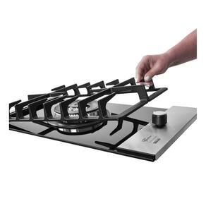 Cooktop a gás com 1 queimador Tripla Chama de 3700W, mesa em vidro temperado, trempe dupla em ferro fundido com nivelamento contínuo e acendimento superautomático.Luz de calor residual