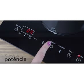 Fogão cooktop digital de indução 1800W, portátil, com painel de controle intuitivo e ajuste de temperatura.Alimentação