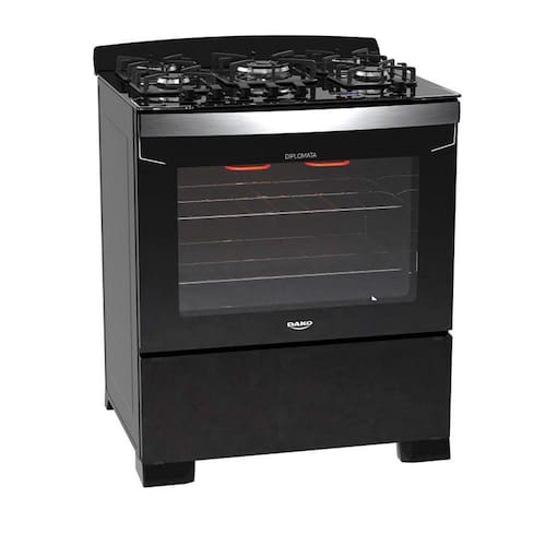 Informações Técnicas: Forno capacidade 100 L Timer Digital Grill e Dourador Elétrico Acompanha lâmpada no forno Mesa de Vidro temperado com recorte frontal Frente Fullglass e forno com vidro duplo. Puxador de alumínio escovado Grades de ferro fundido quadrado com 8 pontos apoiadores. Manipuladores ergonômicos e com trava de segurança infantil. Exclusiva testeira anti- resíduos em vidro temperado e removível. 2 grades deslizantes no forno, sendo 1 deslizante e 1 auto deslizante. 3 Queimadores semi rápido 1,7WK 1 Queimador rápido 3,0WK 1 Queimador extra rápido de tripla chama 3,30WK Pés Semi embutidos e robustos .