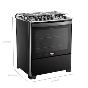 Além de conter uma mesa de inox, possui também a tampa em vidro temperado que garantem uma durabilidade incrível ao produto. Sem falar dos queimadores que dão um show de potência e também economia, atingindo a classificação A em eficiência energética. O fogão conta com um queimador tripla chama de 3,3 kW, dois queimadores rápidos de 2 kW e para fechar mais dois semirrápidos de 1,7 kW de potência. E para sua segurança, o produto vem equipado com uma válvula de segurança e sistema corta gás, que é projetada para cortar a alimentação de gás automaticamente, caso a chama do queimador se apague.