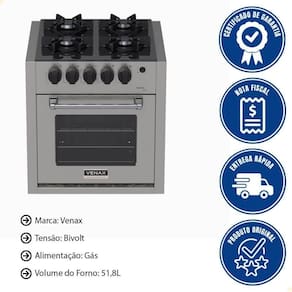 - Seu acendimento automático e a válvula de garantem mais conforto e , enquanto o forno de 51,8L oferece espaço ideal para suas receitas.