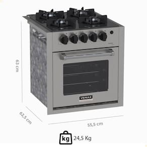 FOGÃO DE EMBUTIR 4 BOCAS VENAX GAUDI LINE INOX 51,8L GÁS GLP AUTOMÁTICO BIVOLT 30299