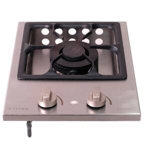 Fogão de Embutir a Gás GLP Titan Range Top Profissional 1 Boca Grelha 30x30cmO Fogão de Embutir a Gás GLP Titan Range Top Profissional de 1 Boca é a solução compacta e poderosa para quem busca versatilidade e alto desempenho em qualquer cantinho da cozinha. Este produto é ideal para ser embutido em cozinhas planejadas de apartamentos, em ilhas gourmet, como um fogão auxiliar em cozinhas profissionais de restaurantes e bistrôs, ou em food trucks e quiosques onde o espaço é precioso. Imagine usá-lo para finalizar molhos com fervura precisa, grelhar pães e legumes na grelha reversível de ferro, preparar um risoto cremoso com controle total do fogo ou mesmo como um ponto de calor dedicado para fritar acompanhamentos enquanto outras panelas ocupam o fogão principal. Seu duplo queimador industrial oferece duas potências diferentes em uma única boca, proporcionando um controle preciso do calor para desde cozimentos delicados até frituras rápidas, tudo com o acendimento automático que traz praticidade e segurança. Fabricado em aço inox escovado, ele agrega um visual profissional e moderno ao seu ambiente, sendo tão resistente quanto elegante. Com ele, você otimiza seu espaço e ganha um aliado poderoso e versátil para explorar toda a sua criatividade culinária. Maximize seu espaço e seu potencial na cozinha! Adquira já o Fogão de Embutir Titan 1 Boca e cozinhe como um profissional! Especificações Técnicas: Modelo: 2153Tipo de Gás: GLP (Gás Liquefeito de Petróleo). Sistema de Ignição: Acendimento automático por faísca (botão piezo). Construção: Estrutura em Aço Inox com acabamento escovado. Queimador: Queimador industrial duplo de baixa pressão. Queimador 15 cm: Consumo 0, 255 kg/h | Potência 2. 910 kcal/h (3, 384 kW). Queimador 7 cm: Consumo 0, 132 kg/h | Potência 1. 420 kcal/h (1, 651 kW). Potência Total: 4. 330 kcal/h (5, 035 kW). Medida do Nicho para Embutir: 324 mm (Largura) x 450 mm (Profundidade). Grelha: Grelha de ferro fundido reversível, medindo 315 x 315 mm. Medidas: Altura: 90 cmLargura: 36, 3 cmProfundidade: 48, 4 cmPeso: 7, 65 kg