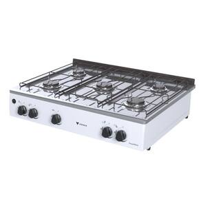 Tipo: Fogão Portátil Acendimento: Automático Queimadores: 3 Grandes e 2 Médios Trempe dos Queimadores: Esmaltadas Mesa Queimadores Inox Tampa da mesa: Respaldo Botões: Removíveis Entrada de Gás: Uma Entrada (Lado esquerdo visto de frente) Marca: Venax