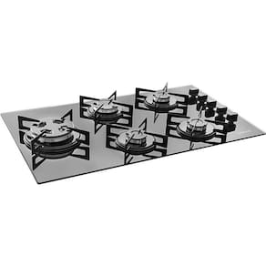 Cooktop a Gás Suggar FG5535VP 5 Bocas Vidro Temperado com Tripla Chama Preto Bivolt. Mesa em vidro temperado e trempes em ferro fundido. Acendimento automático e botões removíveis. Queimador tripla chama lateral.Luz de calor residual