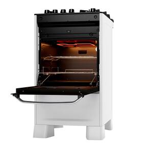 DADOS TÉCNICOS: - Voltagem: Bivolt - Cor: Branco - Quantidade de bocas: 4 Bocas - Acendimento: Automático - Tipo de mesa: Vidro temperado - Instalação: Fogão de piso - Funcionamento: Gás - Capacidade do forno: 56L - Tampa: Não - Grades do forno: 1 grade fixa e 1 grade deslizante com 3 níveis de ajuste no forno - Botões Removíveis: Sim - Tipo de gás: GLP - Trempes: Trempes individuais de ferro fundido com 6 apoios - Medidas do fogão (AxLxP): 92x49,5x64,3 cm - Peso: 24 Kg - Garantia: 12 meses