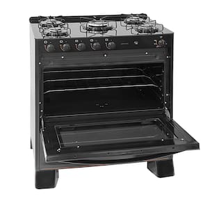 DADOS TÉCNICOS: - Voltagem: Bivolt - Cor: Preto - Quantidade de bocas: 5 Bocas - Acendimento: Automático - Tipo de mesa: Vidro temperado - Instalação: Fogão de piso - Capacidade do forno: 90L - Tampa: Não - Grades do forno: Grade fixa com 3 níveis de ajuste no forno - Botões Removíveis: Sim - Tipo de gás: GLP - Trempes: Aço esmaltado brilhante com 6 pontos de apoio - Medidas do fogão (AxLxP): 92x75,5x64,3cm - Peso: 30 Kg - Garantia: 12 meses