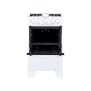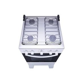 O fogão conta com puxador tubular metálico, que permite mais estabilidade para a abertura da porta do forno, painel moderno que permite controlar melhor a temperatura das bocas e do forno, pés altos e robustos, trempes duplas em aço esmaltado e acendimento manual.