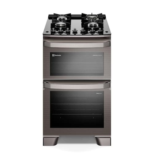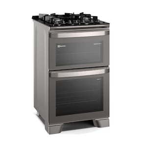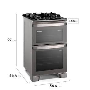 Possui dois fornos independentes para que você tenha mais rapidez e liberdade na hora de preparar suas receitas favoritas e deixa sua cozinha mais elegante graças à cor cinza e ao design moderno.
