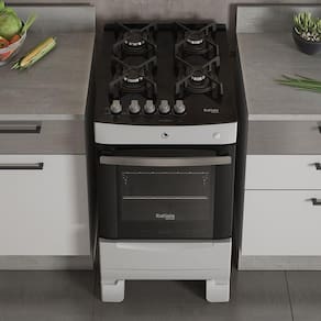 Fogão Itatiaia Vitrum 4 Bocas Branco. Superior em todos os detalhes. Possui acendimento automático, mesa de vidro temperado, bocas e trempes individuais e pés altos que facilitam na hora da limpeza.