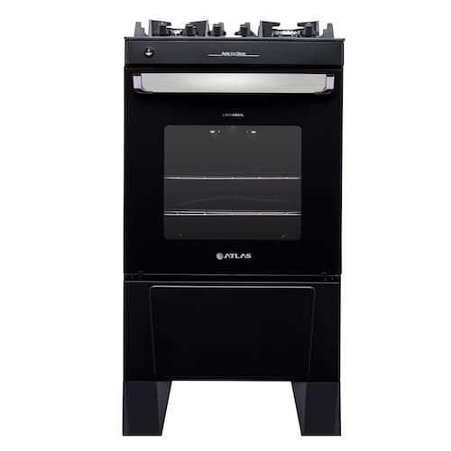 Fogão 4 bocas Atlas Agile Up Glass Preto com Mesa de Vidro