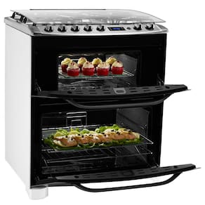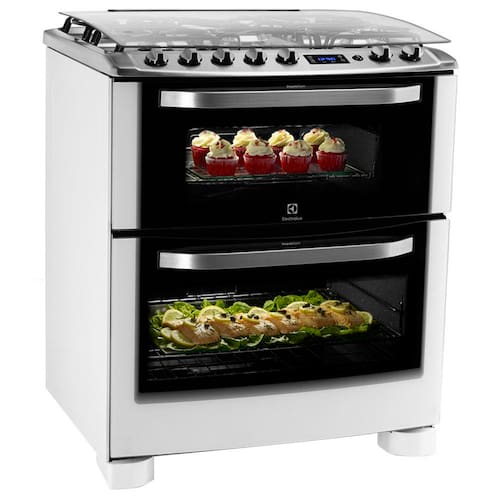 O Fogão Electrolux 5 Bocas 76RBD conta com duplo forno que permite assar duas receitas diferentes ao mesmo tempo, levando praticidade e economia de tempo para sua cozinha. Seu design diferenciado e moderno traz ainda Timer digital e relógio que avisa quando sua receita está pronta.