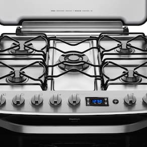 Com mesa em aço inox fácil de limpar e composta por compartimentos que impedem que líquidos derramados se espalhem. Possui cinco queimadores, sendo um deles tripla chama para acelerar o tempo de preparo dos alimentos, forno amplo, grill elétrico e botão Abre Fácil que permite remover o vidro interno da porta com facilidade.