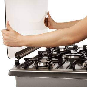 Em poucos segundos a tampa do Fogão Celebrate 76DFX pode ser removida facilmente para limpeza, sem grande esforço e com total segurança.