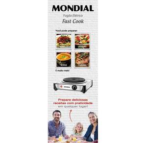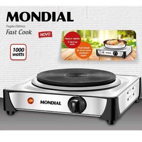 Fogão Elétrico 1 Boca Fast Cook FE-04 Mondial 220V Perfeito para quem mora sozinho ou costuma acampar com frequência, o Fogão Elétrico Mondial Fast Cook FE-04 será o equipamento ideal para preparar qualquer tipo de refeição. Com uma chapa de aquecimento e seis níveis de temperatura, ele permitirá que você mostre toda a sua criatividade com as receitas, pois é capaz de ferver, cozinhar ou fritar qualquer alimento com a mesma facilidade. Prepare todos os tipos de refeições em qualquer lugar com o Fogão Elétrico Mondial Fast Cook FE-04. Características - Moderno, com acabamento em aço inox, é resistente e fácil de limpar. - Com uma chapa de aquecimento e até 6 níveis de temperatura para aquecer, ferver, fritar e cozinhar com diferentes intensidades. - Indicado para lugares pequenos ou ao ar livre, como camping, ele não utiliza gás e tem potência de 1000W, para preparar suas receitas preferidas. - Aonde quer você esteja a maneira mais prática e rápida de preparar suas receitas e manter suas refeições sempre agradáveis. Ficha Técnica Marca: Mondial Modelo: Fast Cook Fe-04 Potência: 1000W Tensão: 220V Consumo: 1,0 Kw/h Material: Inox Peso: 1,37 kg Dimensões do produto A x L x P : 6,8 x 26 x 22,5 cm Garantia: 12 meses Conteúdo Da Embalagem 01 Fogão Elétrico 1 Boca Fast Cook Fe-04 Mondial 220V Manual de instruções Sobre a Mondial A Mondial é uma empresa que oferece uma linha completa de produtos com destaque para o design moderno, qualidade e preço adequado, atendendo aos desejos de clientes e consumidores. A marca realiza pesquisas constantes junto a consumidores e o trabalho de técnicos e engenheiros resultam em produtos que estão em constante inovação e evolução. Mondial, sua melhor escolha. Marca: Não Informado