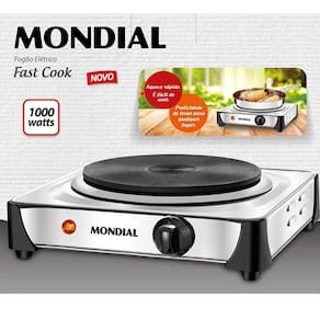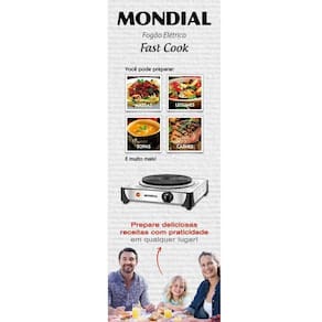 Fogão Elétrico 1 Boca Fast Cook FE-04 Mondial 220V Perfeito para quem mora sozinho ou costuma acampar com frequência, o Fogão Elétrico Mondial Fast Cook FE-04 será o equipamento ideal para preparar qualquer tipo de refeição. Com uma chapa de aquecimento e seis níveis de temperatura, ele permitirá que você mostre toda a sua criatividade com as receitas, pois é capaz de ferver, cozinhar ou fritar qualquer alimento com a mesma facilidade. Prepare todos os tipos de refeições em qualquer lugar com o Fogão Elétrico Mondial Fast Cook FE-04. Características - Moderno, com acabamento em aço inox, é resistente e fácil de limpar. - Com uma chapa de aquecimento e até 6 níveis de temperatura para aquecer, ferver, fritar e cozinhar com diferentes intensidades. - Indicado para lugares pequenos ou ao ar livre, como camping, ele não utiliza gás e tem potência de 1000W, para preparar suas receitas preferidas. - Aonde quer você esteja a maneira mais prática e rápida de preparar suas receitas e manter suas refeições sempre agradáveis. Ficha Técnica Marca: Mondial Modelo: Fast Cook Fe-04 Potência: 1000W Tensão: 220V Consumo: 1,0 Kw/h Material: Inox Peso: 1,37 kg Dimensões do produto A x L x P : 6,8 x 26 x 22,5 cm Garantia: 12 meses Conteúdo Da Embalagem 01 Fogão Elétrico 1 Boca Fast Cook Fe-04 Mondial 220V Manual de instruções Sobre a Mondial A Mondial é uma empresa que oferece uma linha completa de produtos com destaque para o design moderno, qualidade e preço adequado, atendendo aos desejos de clientes e consumidores. A marca realiza pesquisas constantes junto a consumidores e o trabalho de técnicos e engenheiros resultam em produtos que estão em constante inovação e evolução. Mondial, sua melhor escolha. Marca: Não Informado Ean: 7899882306958