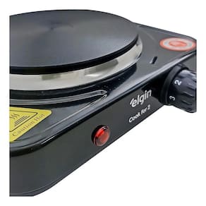 Fogão elétrico de mesa com 1 boca e 1000W de potência. Possui 5 ajustes de temperatura, indicação luminosa de aquecimento e termostato, fácil limpeza e base estável. Ignição automática.Luz de calor residual