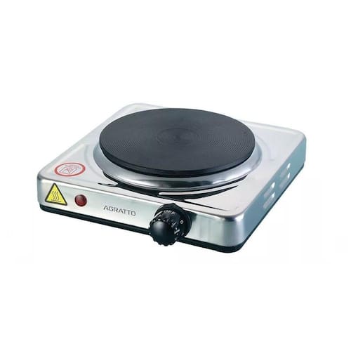 Fogão Elétrico Portatil De Mesa 1 Boca Agratto 220v O Fogão Elétrico de Mesa Um prato Agratto é ideal para sua cozinha. Prepare as mais deliciosas receitas nesse prático fogão de mesa com um prato de aquecimento e ajuste de temperatura. Um fogão para completar sua cozinha. Compacto: Se adequa às sua necessidades facilitando seu uso Fácil e prático de usar: Basta ligar na tomada e colocar a panela sobre o prato de aquecimento. Corpo em aço inoxidável: Maior resistência e facilidade na limpeza. Prato de aquecimento: Feito em ferro fundido, aquece mais rápido e mantém a temperatura. Cinco níveis de temperatura: Escolha um dos cinco níveis de temperatura. Todos os tipos de panelas: Funciona com todos os tipos de panelas do mercado que podem ser usadas para fogões à gás. Segurança e estabilidade: Não precisa de gás pois funciona com resistências elétricas para aquecer as panelas. 220v