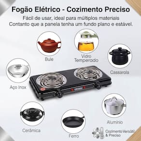1. Panelas: Utilize panelas de fundo plano (aço, ferro, alumínio ou cerâmica) para garantir o contato total com a resistência e economizar energia.