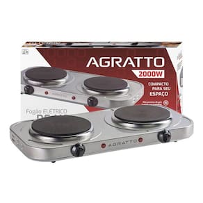 Fogão Elétrico Agratto De Mesa FM-01 127V 2000W Com este cooktop da Agratto, você fará brilhar seus talentos gastronômicos. Deleite e delicie a qualquer pessoa com as comidas mais saborosas em qualquer ocasião O Fogão elétrico 2 bocas Agratto possui corpo em aço inox, para uso doméstico, e prato com revestimento antiaderente, é capaz de preparar qualquer tipo de alimento ou apenas aquecer. Este fogão substitui com máxima eficiência os fogões convencionais. Especificações:• Compacto: Ocupa pouco espaço adequando às suas necessidades facilitando seu uso.• Fácil e prático de usar: Basta ligar na tomada e colocar a panela sobre o prato de aquecimento.• Corpo em aço inoxidável: Maior resistência e facilidade na limpeza.• Dois pratos de aquecimento: Feitos em ferro fundido com revestimento antiaderente, aquecem mais rápido e mantém a temperatura uniforme.