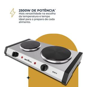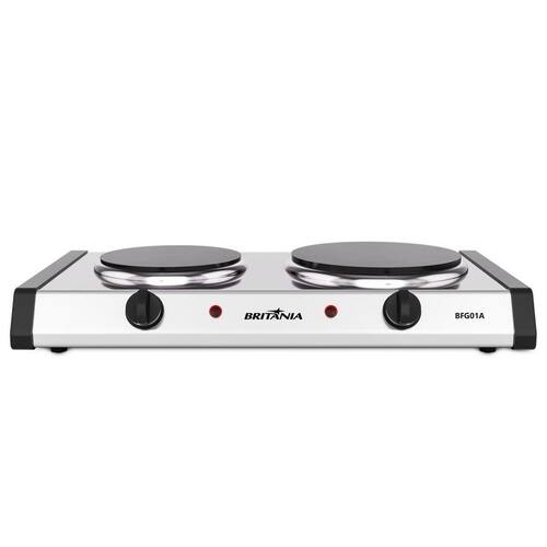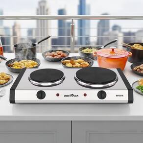 Fogão elétrico de 2 bocas, ideal para cozinhas pequenas ou espaços integrados.Luz de calor residual