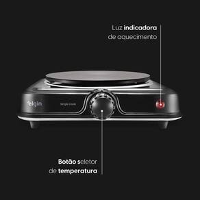 Fogão Elétrico Cooktop 1 Boca com 1.000W de potência, 5 níveis de ajuste de temperatura, indicação luminosa de aquecimento e proteção contra superaquecimento. Chapa de ferro fundido para maior durabilidade e retenção de calor. Design compacto e portátil.Luz de calor residual