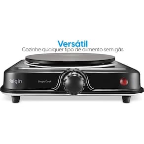 O fogão elétrico Elgin 1000W oferece praticidade e eficiência para o seu dia a dia, com controle de temperatura ajustável e a conveniência de cozinhar sem gás.