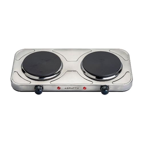 Fogão Elétrico Inox 2 Bocas Anti-aderente 127v Agratto Fm01 - Compacto, prático, simples.O Fogão Elétrico de Mesa Agratto é ideal para sua cozinha.Prepare as mais deliciosas receitas nesse prático fogão de mesa com dois pratos de aquecimento e ajuste de temperatura.Um fogão para completar sua cozinha. Características: - Compacto: Se adequá às sua necessidades facilitando seu uso - Fácil e prático de usar: Basta ligar na tomada e colocar a panela sobre o prato de aquecimento. - Corpo em aço inoxidável: Maior resistência e facilidade na limpeza. - Dois pratos de aquecimento: Feitos em ferro fundido, aquecem mais rápido e mantém a temperatura. - Cinco níveis de temperatura: Escolha um dos cinco níveis de temperatura. - Todos os tipos de panelas: Funciona com todos os tipos de panelas do mercado que podem ser usadas para fogões à gás. - Segurança e estabilidade: Não precisa de gás pois funciona com resistências elétricas para aquecer as panelas. Potência 2000w Peso líquido 2,550kg Conteúdo 1 fogão elétrico Garantia 12 meses