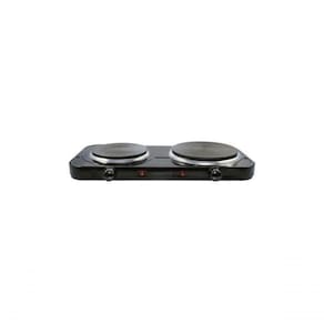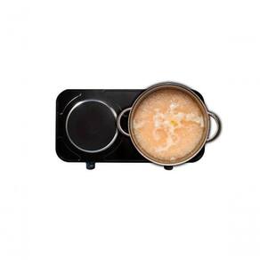 Fogão elétrico de mesa com 2 bocas, corpo em aço inoxidável, controle de temperatura independente para cada prato, potência de 2500W.Luz de calor residual
