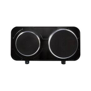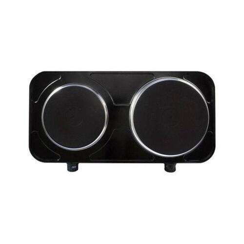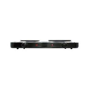 Fogão elétrico de mesa com 2 pratos, controle de temperatura independente, corpo em aço inoxidável e luz de funcionamento.Luz de calor residual