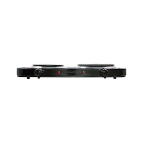Fogão elétrico de mesa com dois pratos de aquecimento de potência individual ajustável. Prato médio de 1000W e prato grande de 1500W. Estrutura em aço inoxidável.Luz de calor residual