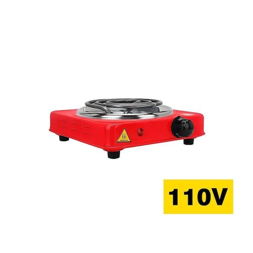 Fogão elétrico portátil com 1 boca, potência de 1000W, temperatura ajustável de 80°C a 400°C, controle por botão giratório, base antiderrapante, luz indicadora de funcionamento, diâmetro da espiral de 145mm. Ideal para campings, viagens, pequenos apartamentos, escritórios ou como fogão auxiliar.Luz de calor residual
