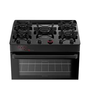 Fogão Esmaltec 5 Bocas Ideal Top Glass Mesa de Vidro Forno 84 Litros Preto T5VAP
