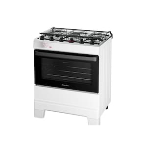 Fogão Esmaltec 5 Bocas Ideal Top Mesa Inox Tampa de Vidro Forno 84 Litros Branco