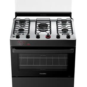 Fogão Esmaltec 5 Bocas Ideal Top Mesa Inox Tampa de Vidro Forno 84 Litros Preto T5IAP