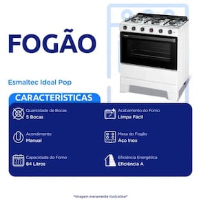 O Fogão Ideal Pop da Esmaltec, chegou para facilitar ainda mais a sua rotina na cozinha! São 5 bocas com acendimento manual, além de te proporcionar trempes com mais segurança e estabilidade para suas panelas. Confira mais detalhes: