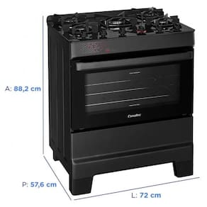 Queimadores: Com trempes duplas em aço esmaltado, ele é altamente durável e resistente ao desgaste do tempo, além de proporcionar maior estabilidade ao acomodar as panelas. A de potência dos queimadores é otimizada para atender a diferentes necessidades culinárias: dois queimadores para uso familiar, com potência de 2,0 kW cada, dois queimadores pequenos com potência de 1,7 kW, e um queimador superchama de 3,0 kW, ideal para preparos rápidos e intensos, como frituras ou grelhados.