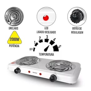 Fogão Fogareiro Cooktop Elétrico 2000 Watts 127V 2 Bocas